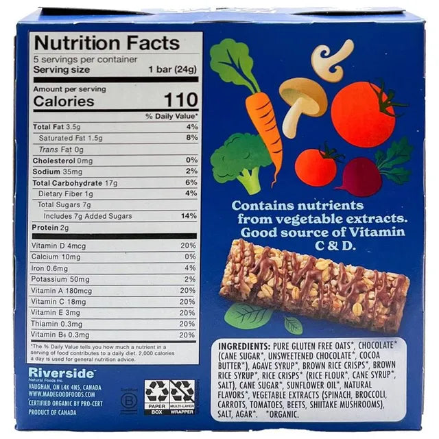 When MadeGood goes decadent, it means indulgence with care! The Vanilla Granola Bar is drizzled and dipped in rich chocolate for the perfect chewy and satisfying bite. Organic, gluten-free, and free from common allergens, it brings together the classic flavors of vanilla and chocolate with a full serving of veggies baked inside. A wholesome, healthy choice for kids' lunchboxes or your own anytime snack.