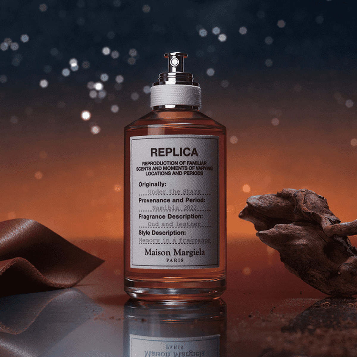 Maison Margiela Replica Under The Stars is a unisex Eau de Toilette capturing the essence of a starry night with oud and leather notes. Perfect for fall and winter.