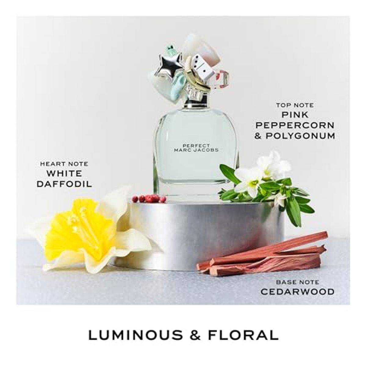 Marc Jacobs Perfect Eau de Toilette is a luminous floral fragrance with top notes of pink peppercorn and polygonum, heart notes of white daffodil, and base notes of cedarwood. Ideal for daily wear, this elegant scent is crafted by the renowned Marc Jacobs fashion house.