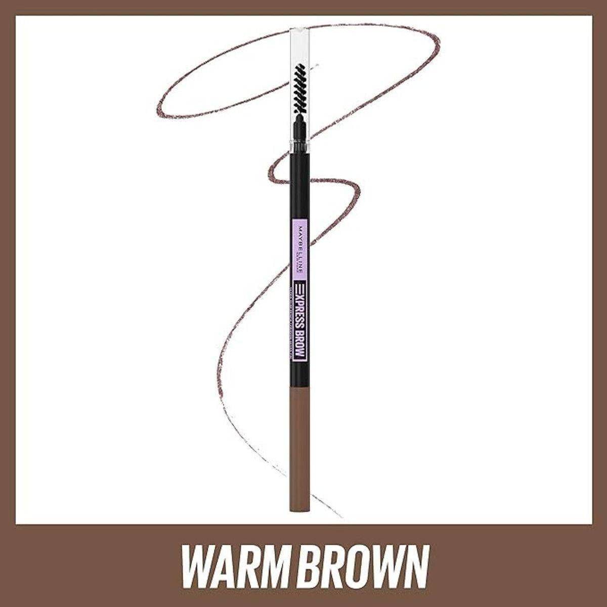 Maybelline Brow Ultra Slim Pencil in Warm Brown offers ultra-precise hairlike strokes for defined, natural-looking eyebrows. Its break-resistant formula and built-in spoolie brush ensure smooth application and lasting results. Ideal for creating fuller-looking brows with ease.