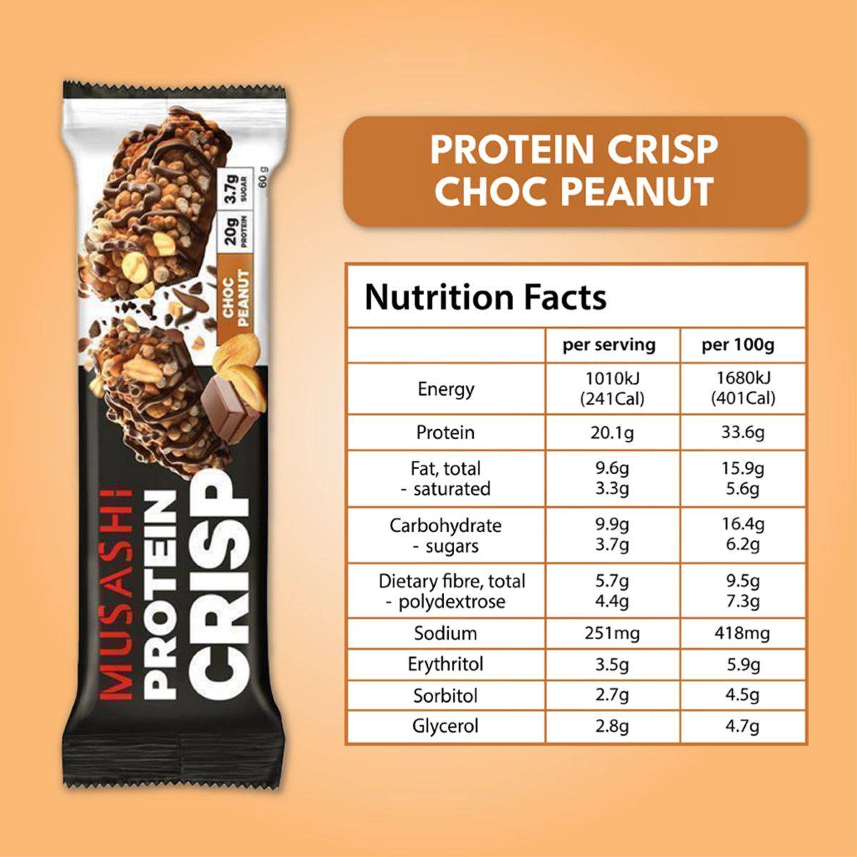 - Musashi Protein Crisp Choc Peanut 60g