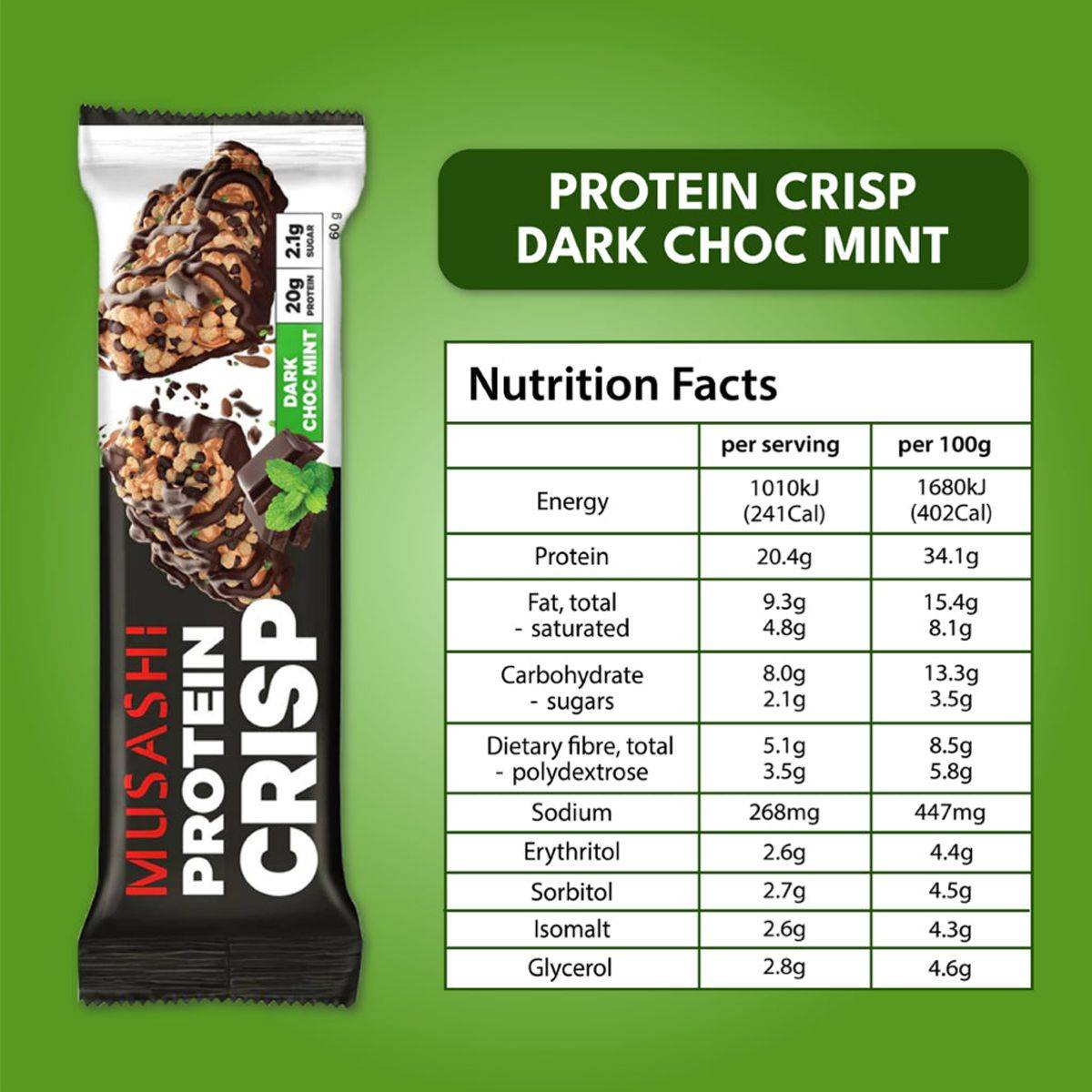- Musashi Protein Crisp Dark Choc Mint 60g