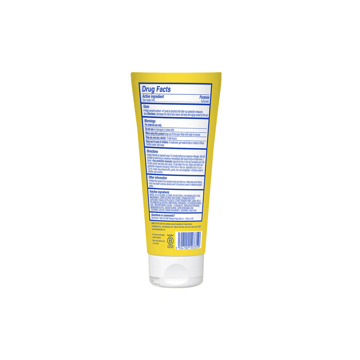 Zinc Oxide 24%, Water, C15-19 Alkane, Glycerin, Polyglyceryl-3 Polyricinoleate, Ethyl Macadamiate, Caprylic/Capric Triglyceride, Styrene/Acrylates Copolymer, Stearyl/Octyldodecyl Citrate Crosspolymer, Lauryl PEG-9 Polydimethylsiloxyethyl Dimethicone, Propanediol, Polyhydroxy Stearic Acid, Triethoxycaprylylsilane, 1,2-Hexanediol, Hydroxy Acetophenone, Magnesium Sulfate, Sodium Chloride, Caprylhydroxamic Acid, Tocopheryl Acetate, Sodium Hyaluronate, Tocopherol, Malic Acid.