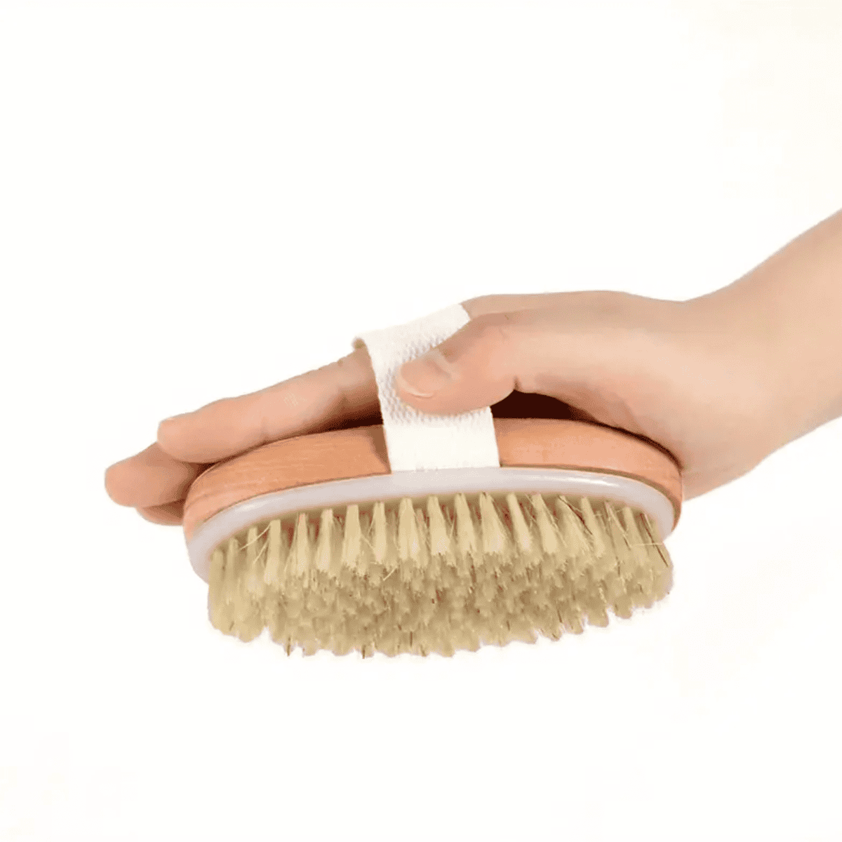 Use on dry skin before showering or bathing. Brush in long, sweeping motions toward the heart (start at the feet/hands and move inwards).