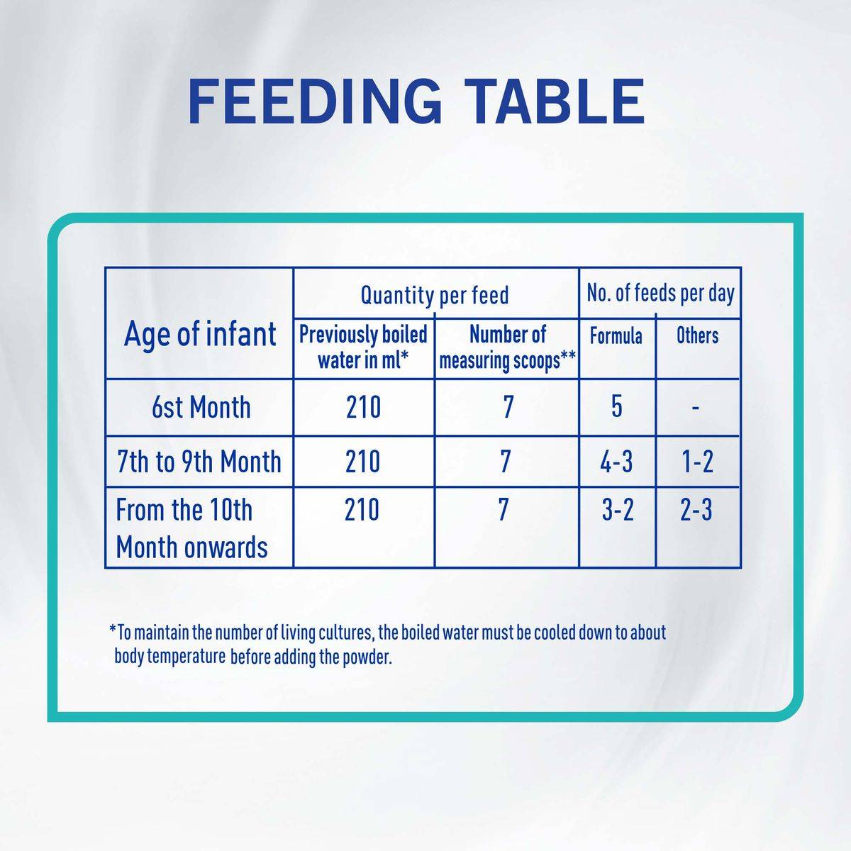 Use 210ml of previously boiled water with 7 scoops of formula.