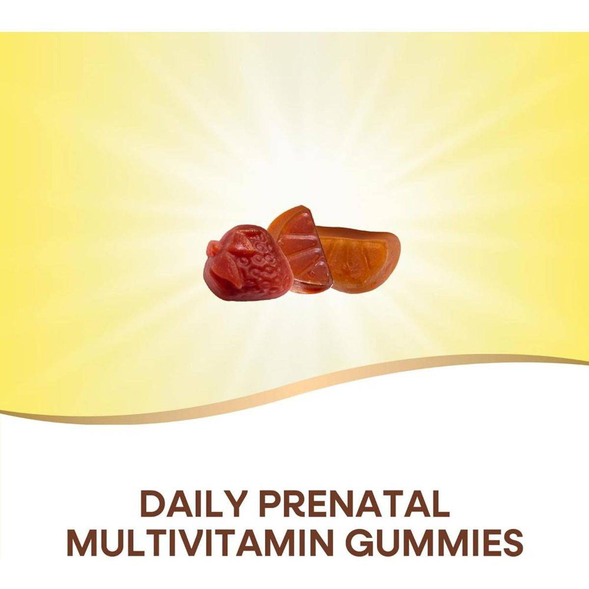 Natures Way Alive! Prenatal Gummies are designed to support mom and baby with plant-based DHA for healthy brain and eye development. Contains 15 vitamins and minerals, including high potency folate and a full B-vitamin complex. Delicious strawberry and lemon flavored gummies, free from gluten, wheat, egg, peanut, dairy, and gelatin.