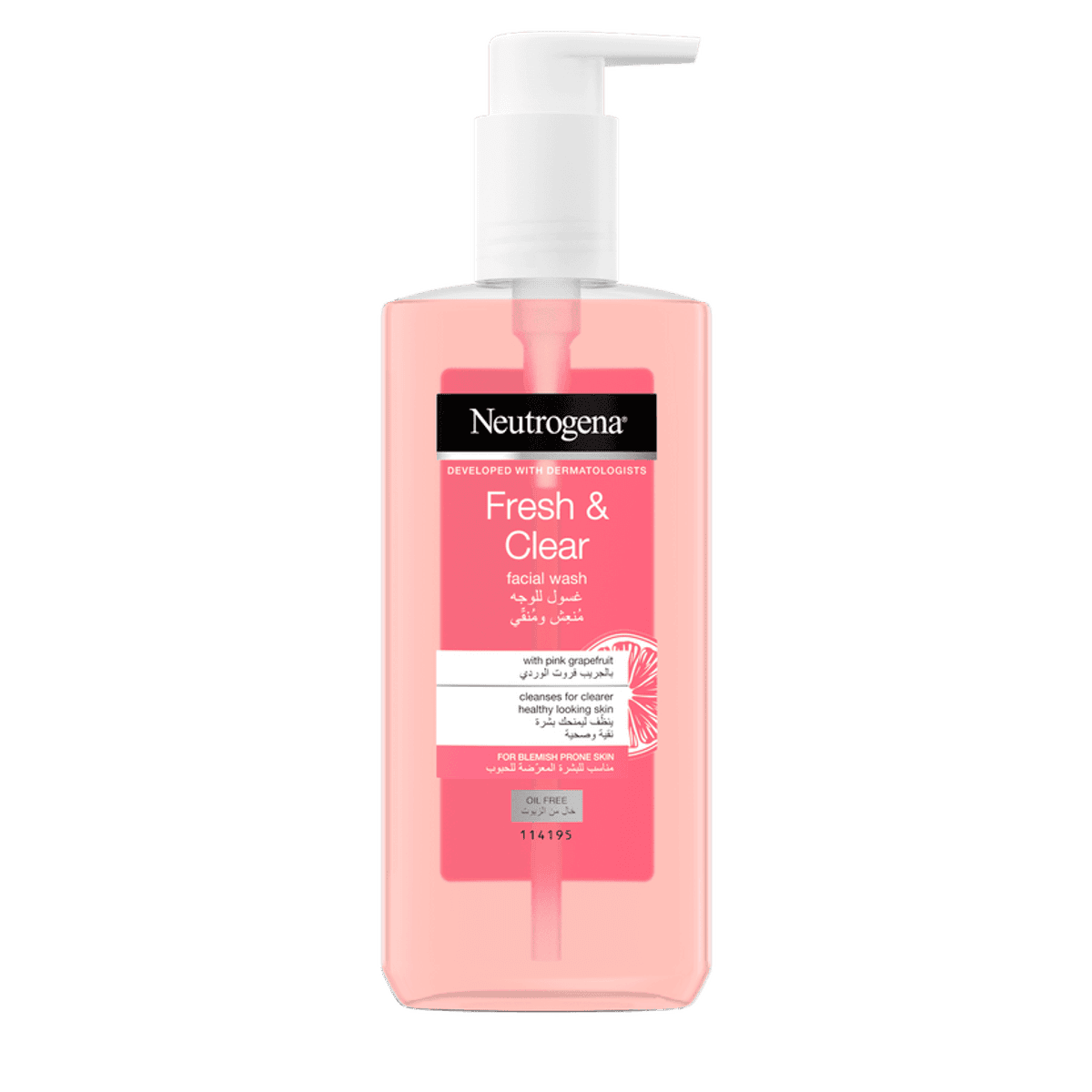 Neutrogena Fresh & Clear Facial Wash is designed for blemish-prone skin. Infused with pink grapefruit, it cleanses for clearer, healthy-looking skin. Oil-free formula suitable for daily use.