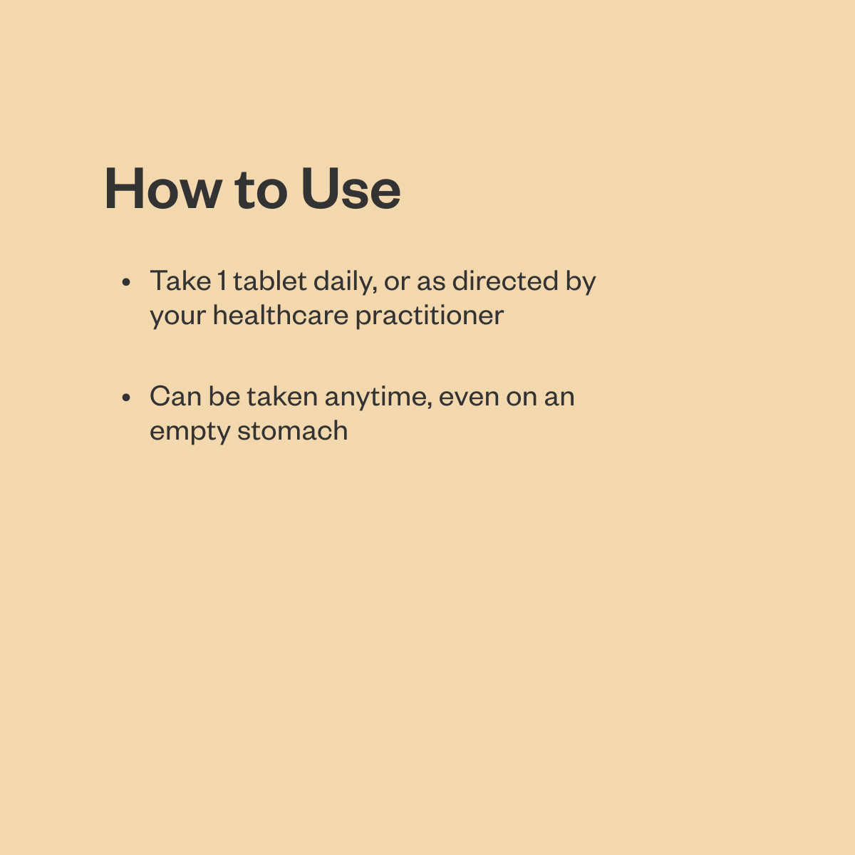 Take 1 tablet daily, or as directed by your healthcare practitioner. Can be taken anytime, even on an empty stomach.