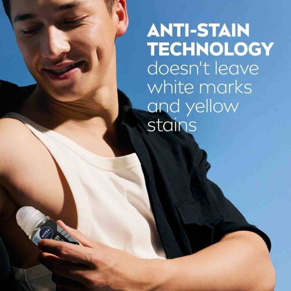 Nivea Men Deodorant Roll On Black & White Fresh offers 48-hour protection against sweat and odour. Its anti-stain technology ensures no white marks on black clothes and no yellow stains on white clothes. The refreshing fragrance leaves skin feeling clean and fresh. Suitable for all skin types and dermatologically tested.