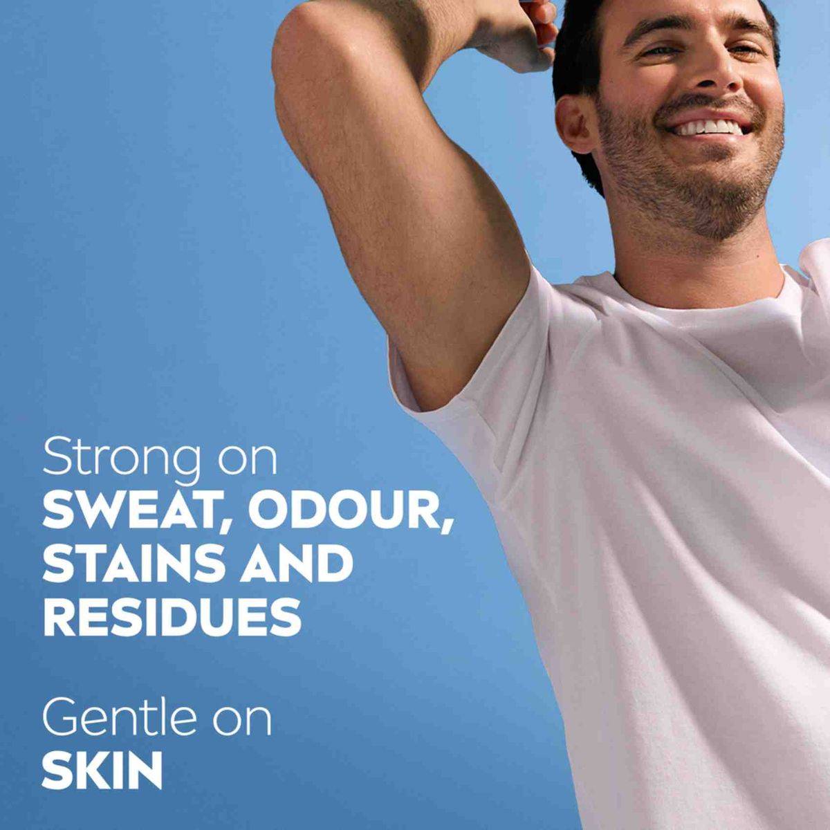 - 5-in-1 benefits: anti-odour, sweat, stains, residues, irritation