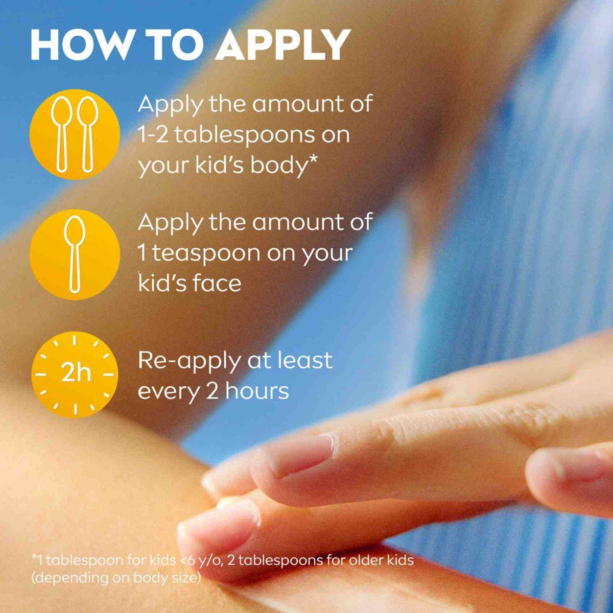 Apply 1-2 tablespoons on body, 1 teaspoon on face. Reapply every 2 hours.