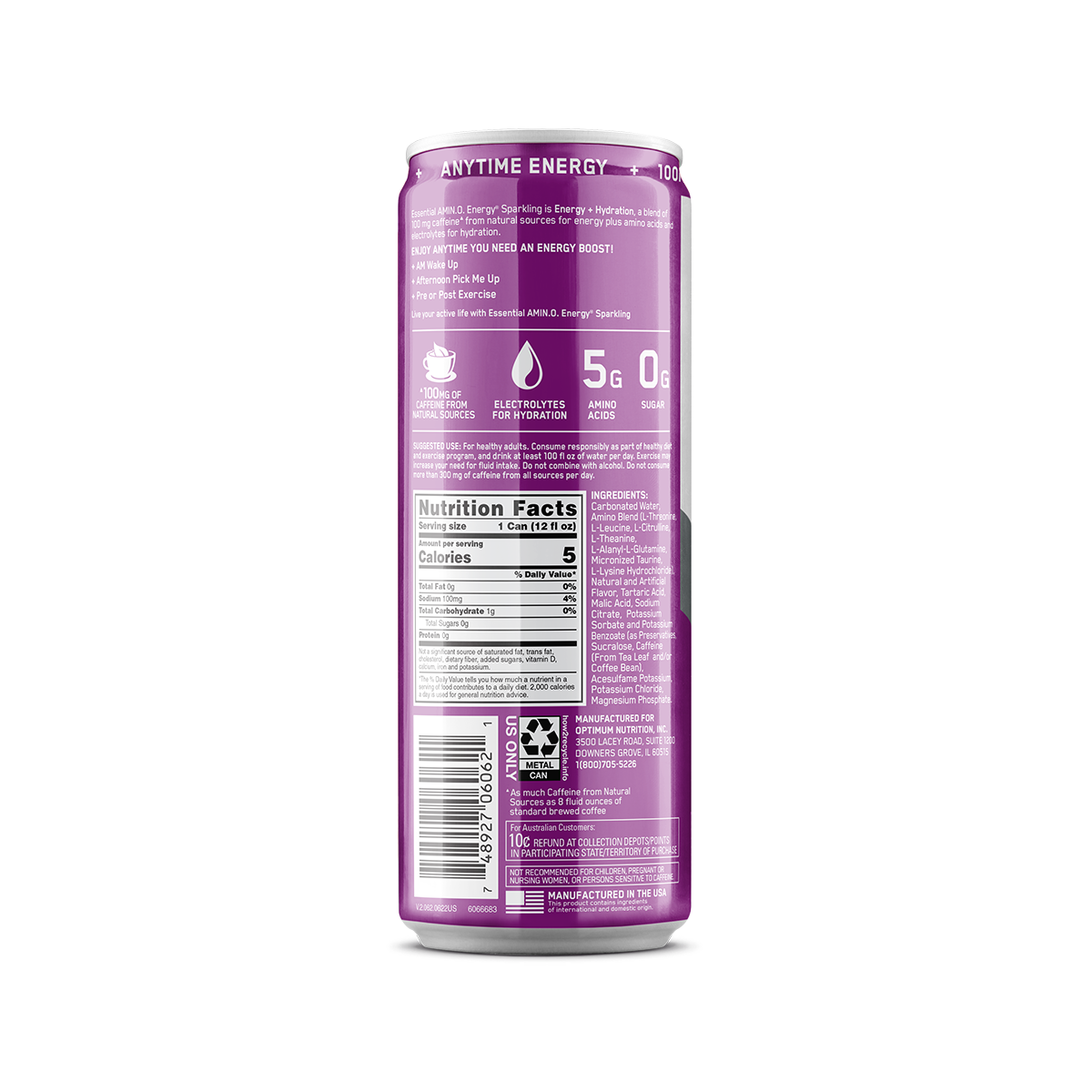 A great-tasting boost of anytime energy, for wherever your day takes you. AMIN.O. ENERGY + Electrolytes Sparkling Hydration Drink offers a combination of 5 grams of amino acids, 100 mg of caffeine from natural sources, and electrolytes to support hydration and active living. Choose from a variety of refreshing fruit flavors!