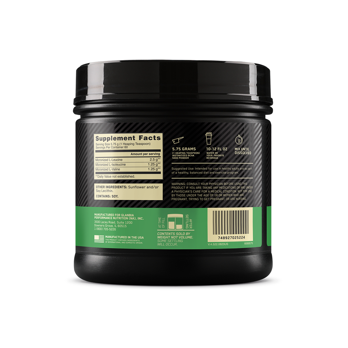 The Branched Chain Amino Acids (BCAAs) are essential amino acids that can't be produced by your body. They can only be taken in through diet. Because the BCAAs are very much in demand with all kinds of athletes, we've made them available to active adults everywhere in a formula that's instantized for easy mixing. ON's Instantized BCAA 5000 Powder is also available flavored and unflavored for stacking.