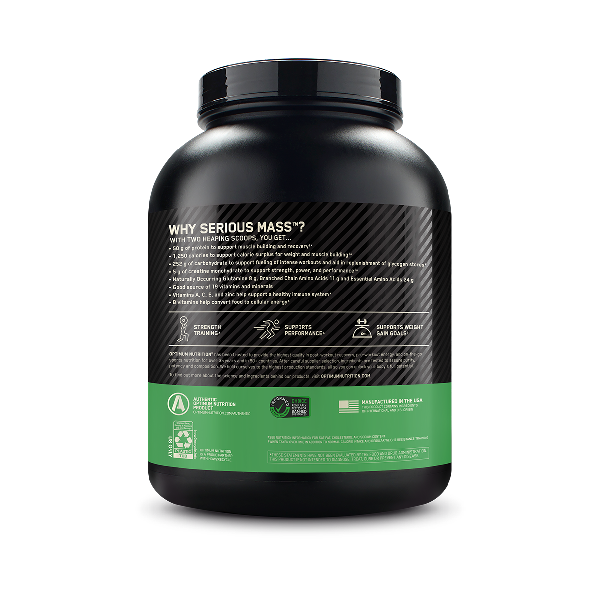 Optimum Nutrition Serious Mass is a high-calorie weight gainer which is also high in protein and when taken over time with regular resistance exercise and a balanced diet can help you gain mass and muscle. It also has creatine and glutamine to support Muscle building & recovery, when accompanied by a balanced diet and regular exercise.