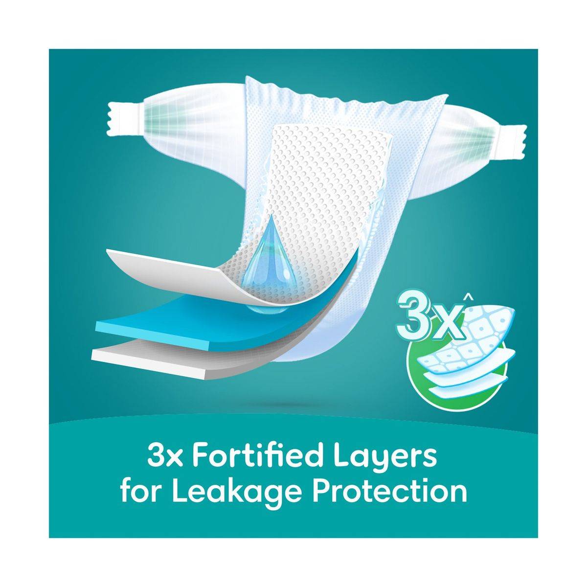 Pampers Baby Dry Taped Diapers are designed for newborns weighing 2-5kg. They feature a navel cut for comfort, wetness indicator, and aloe vera lotion for rash protection. With 3x fortified layers, they ensure leakage protection, making them ideal for daily use.