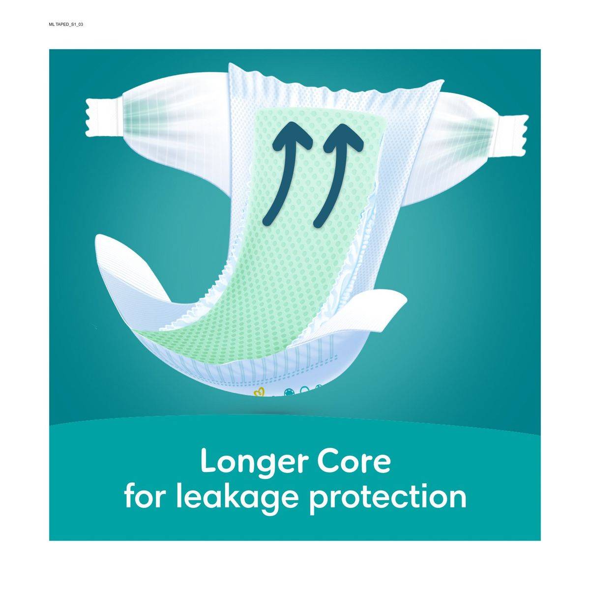 Pampers Baby-Dry Diapers offer up to 100% leakproof protection with Dual-Leak Guard Barriers and Dry-Weave liner. Hypoallergenic and dermatologically tested for sensitive skin.