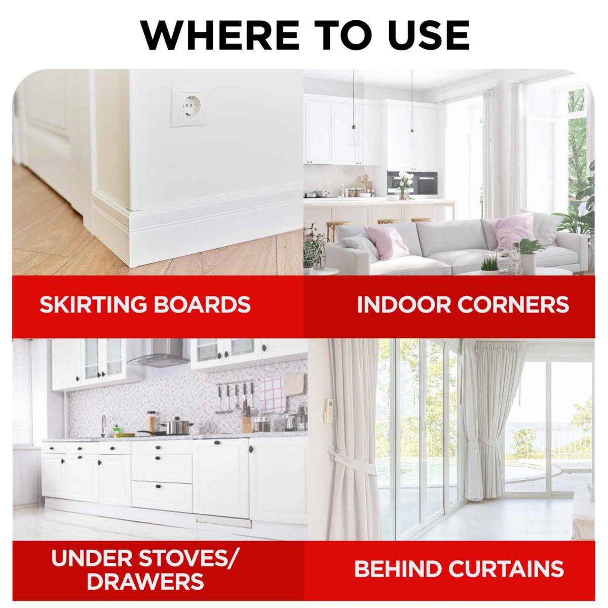 - Spray in the air for flying insects