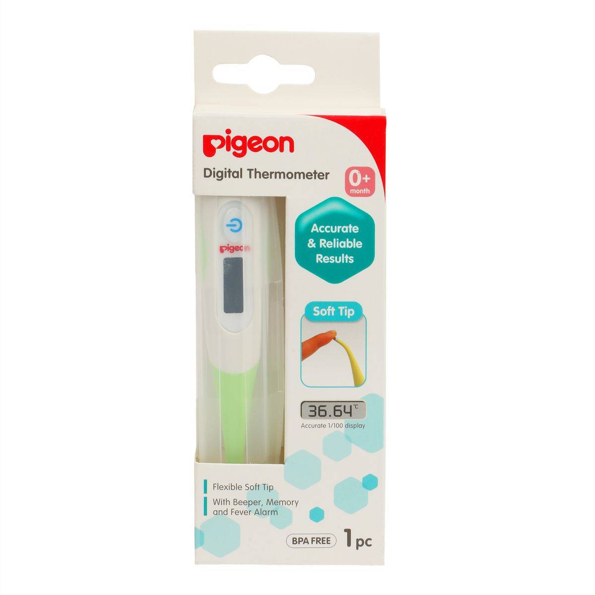 The Pigeon Digital Thermometer provides accurate and reliable temperature readings with a flexible soft tip, fever alarm, and memory recall. Ideal for babies and adults.