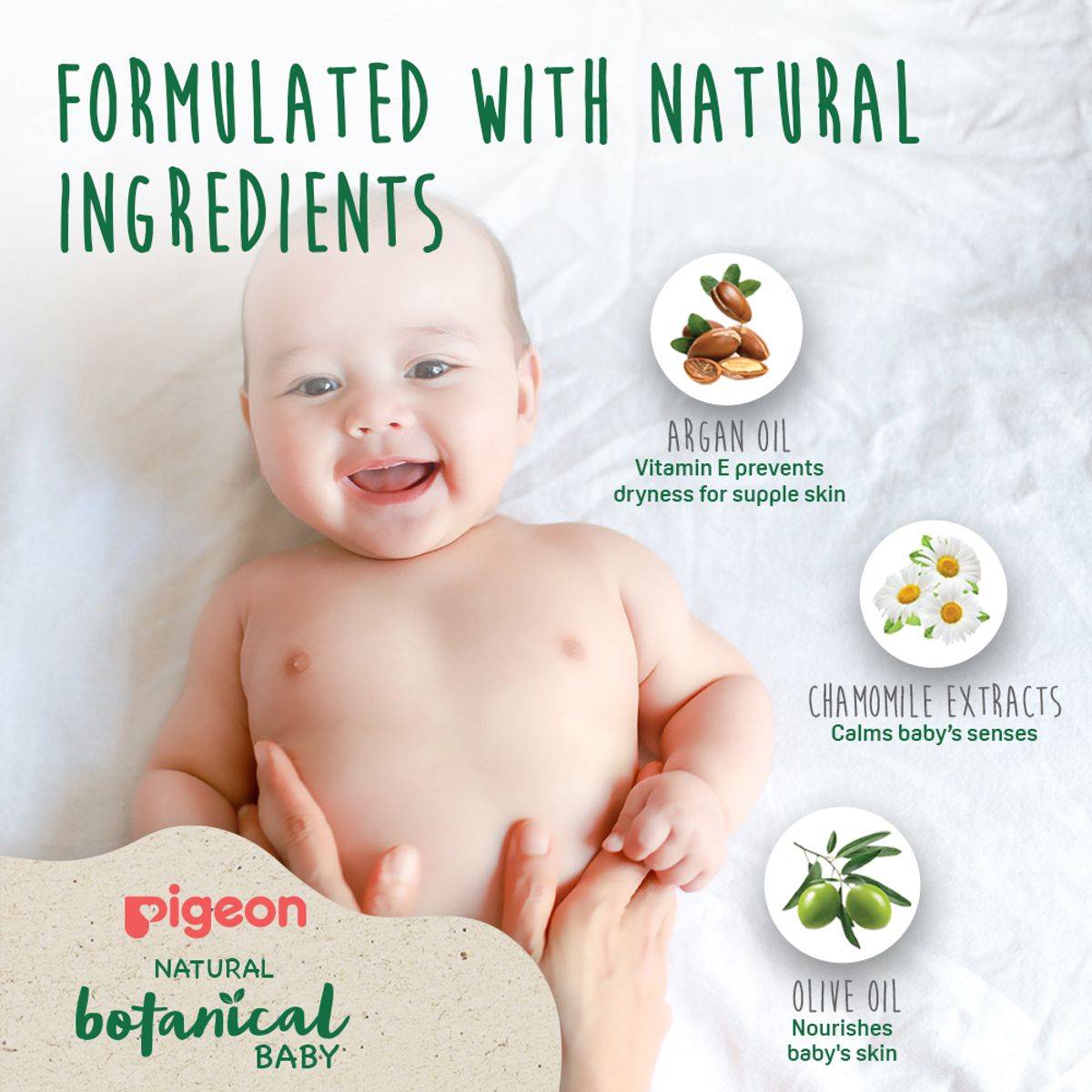 Pigeon Natural Botanical Baby Milky Lotion is formulated with natural oils like Argan, Olive, and Chamomile to nourish and protect delicate baby skin. It provides long-lasting hydration for up to 24 hours, absorbs easily, and helps prevent diaper rashes and skin irritation. Ideal for daily use on sensitive skin.
