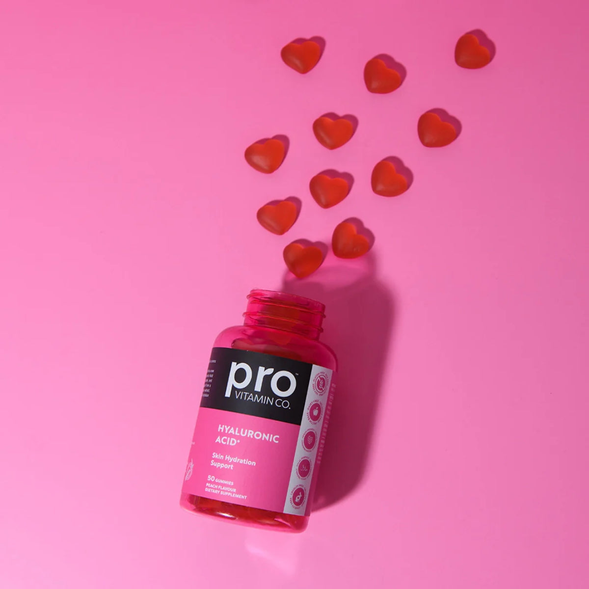 Pro Vitamin Co. is a health and wellness brand. These Gummies contain Hyaluronic Acid, popular for promoting skin hydration and joint lubrication.