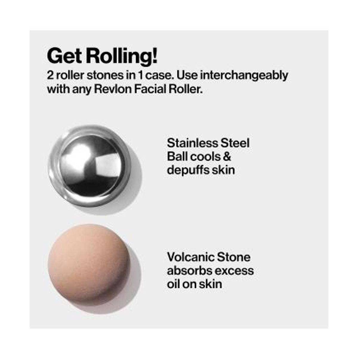 This refill set includes a volcanic stone and stainless steel ball designed to cool and depuff skin while absorbing excess oil. Ideal for enhancing facial roller routines.