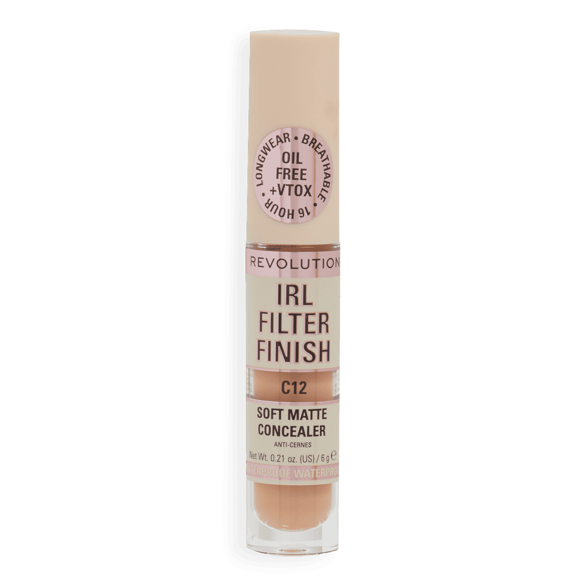 The Revolution Makeup Filter Finish Concealer C12 offers a soft matte finish, perfect for concealing imperfections. Its breathable, oil-free formula ensures long-lasting wear.