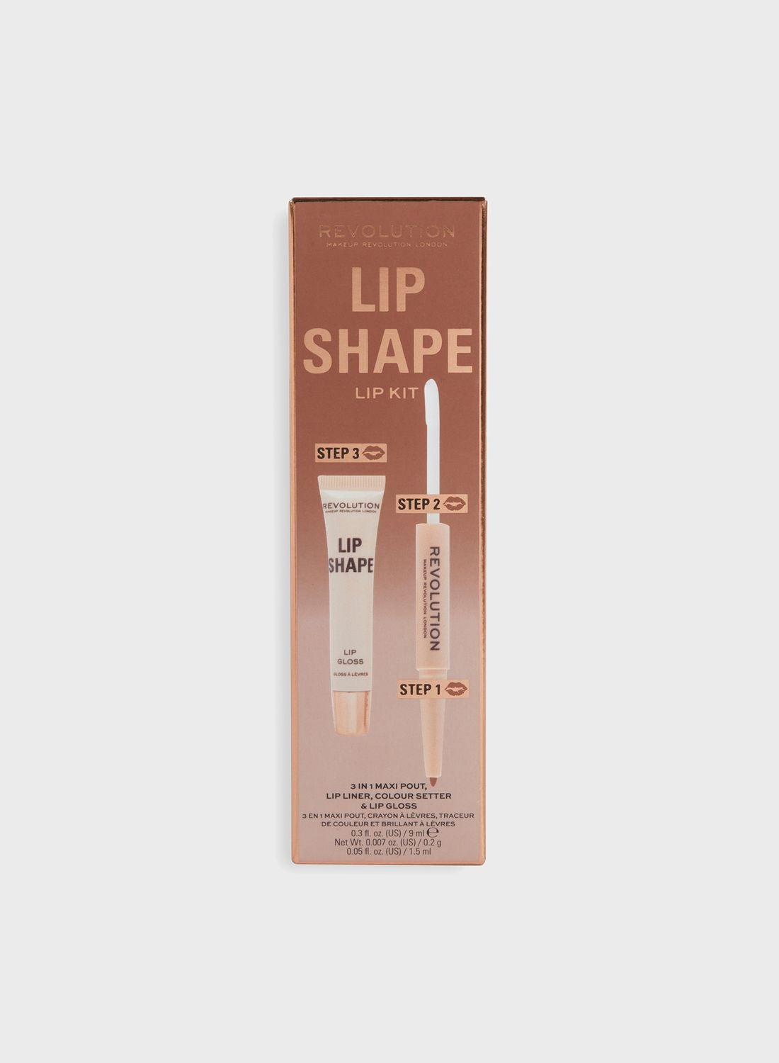 Revolution Makeup Lip Lift Kit Chauffeur Nude offers three essentials for a full lip look. Includes a dual-ended lip liner and color setter, plus a high-shine gloss for a versatile finish.