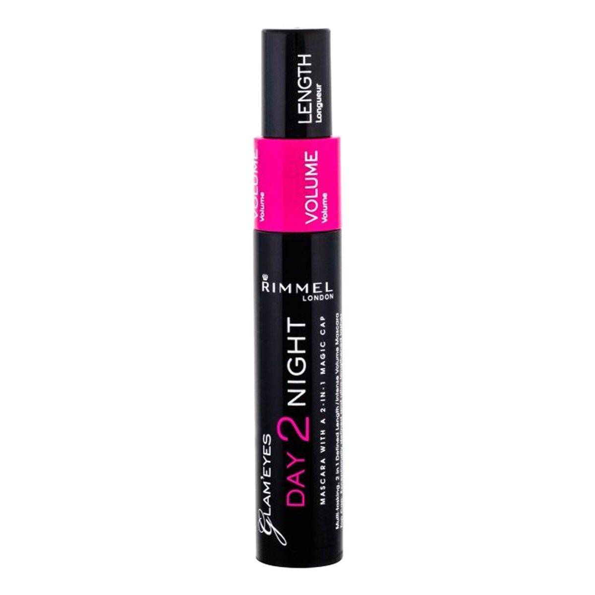Rimmel Day 2 Night Mascara offers two dramatically different lash looks with one magic cap. Choose between defined length or intense volume for versatile styling. Waterproof and cruelty-free, it's perfect for any occasion.