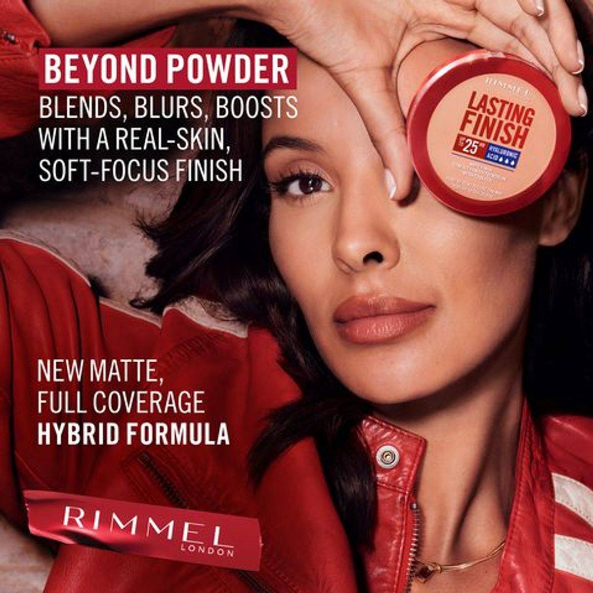 Rimmel Lasting Finish Matte Compact Foundation offers a matte finish with full coverage. It blends seamlessly with skin, providing a soft-focus finish and long-lasting wear. Ideal for controlling shine and perfecting skin tone.