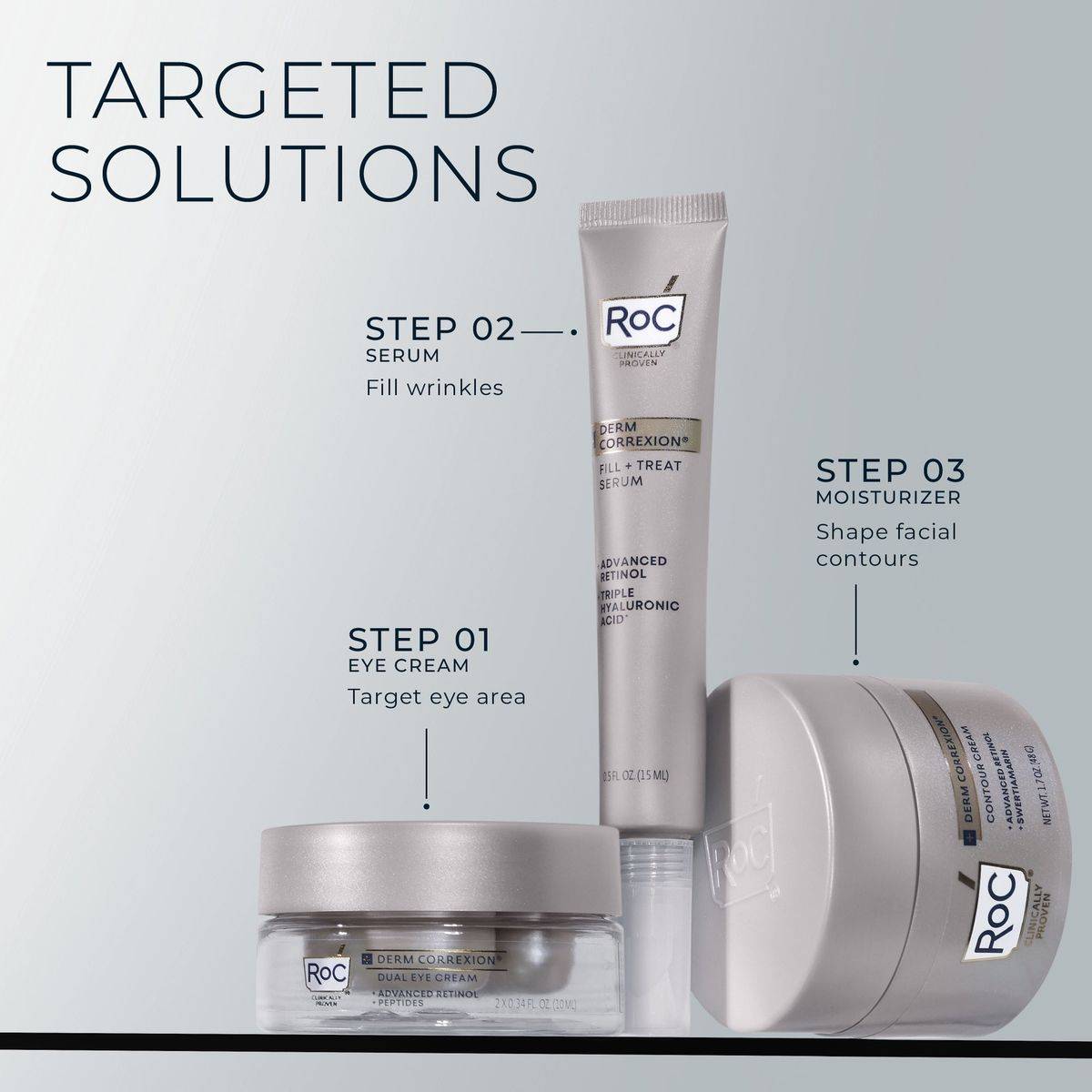 RoC Derm Correxion Dual Eye Cream is a 2-in-1 treatment developed with dermatologists. It lifts and firms eyelids while smoothing and depuffing the under-eye area. Formulated with retinol and peptides, it is clinically proven to reduce dark circles and puffiness.