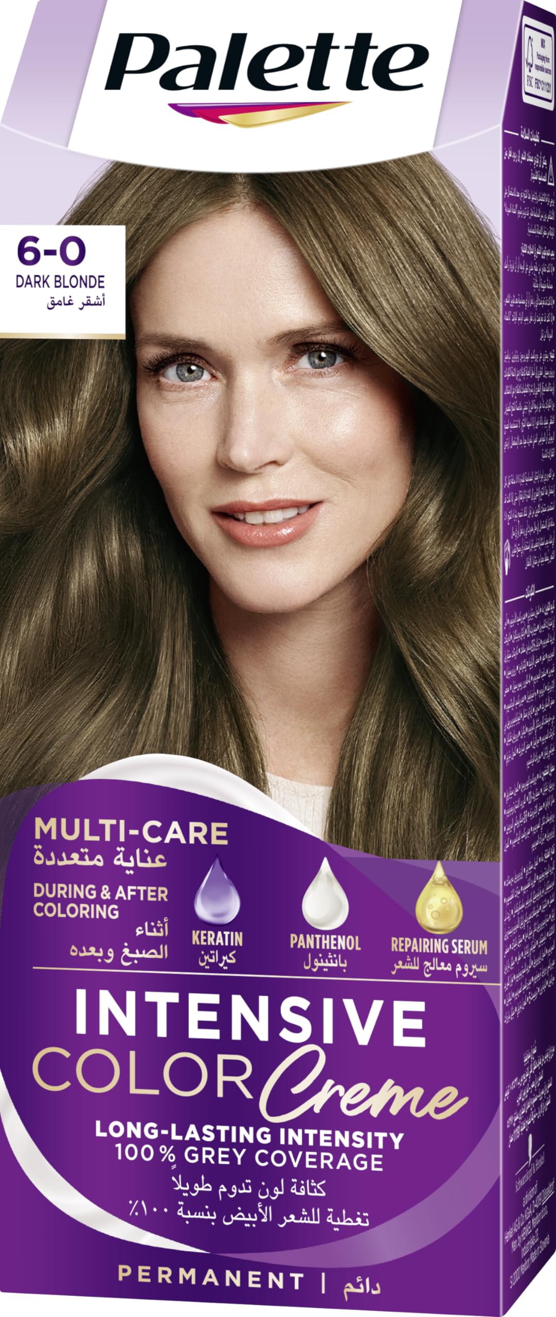 Schwarzkopf Palette Intensive Color Creme 6-0 Dark Blonde offers a professional-grade hair dye solution for home use. It provides long-lasting, vibrant color with 100% grey coverage. Enriched with a Triple Care System of Keratin, Panthenol, and Nutri-oil, it ensures silky, healthy hair. Ideal for all hair types, this permanent hair dye is easy to apply and delivers salon-quality results.