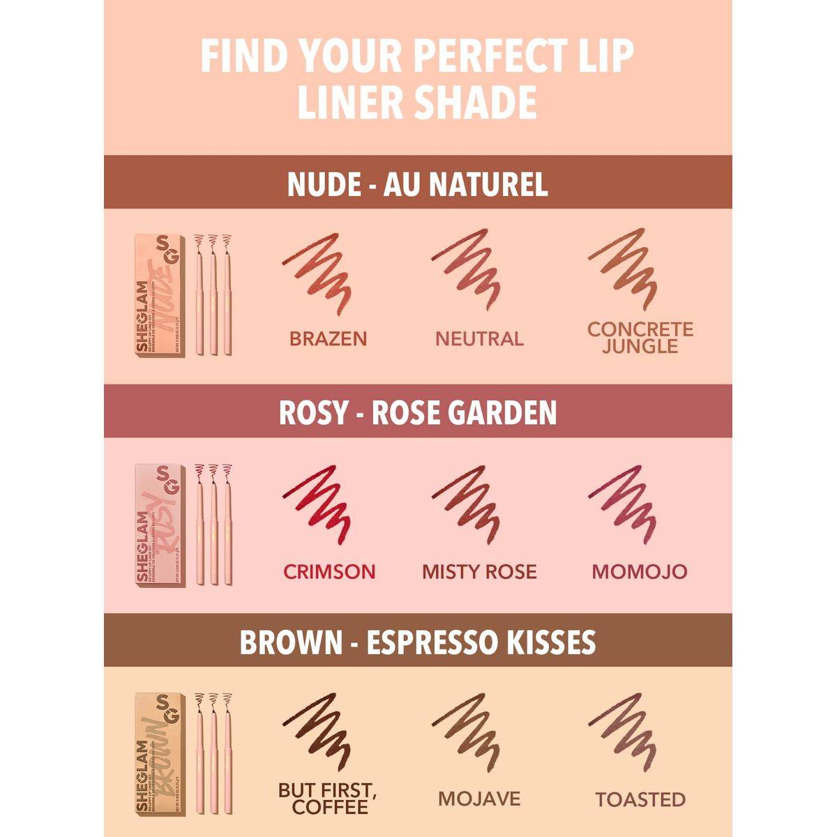 Sheglam is a cosmetics brand. So Lippy is a line of mechanical lip liners. This is a Set of three in the Au Naturel color family, featuring various nude and natural shades.