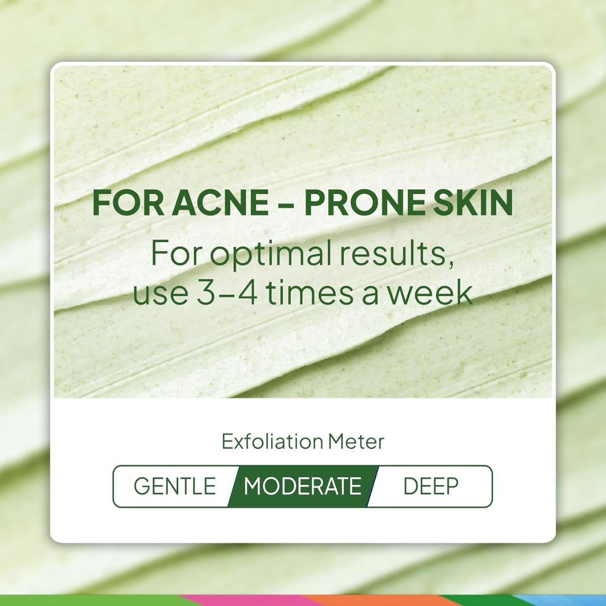 Dampen face and apply scrub. Massage gently in circular motions, avoiding the eye area. Rinse thoroughly. Use 3-4 times a week.