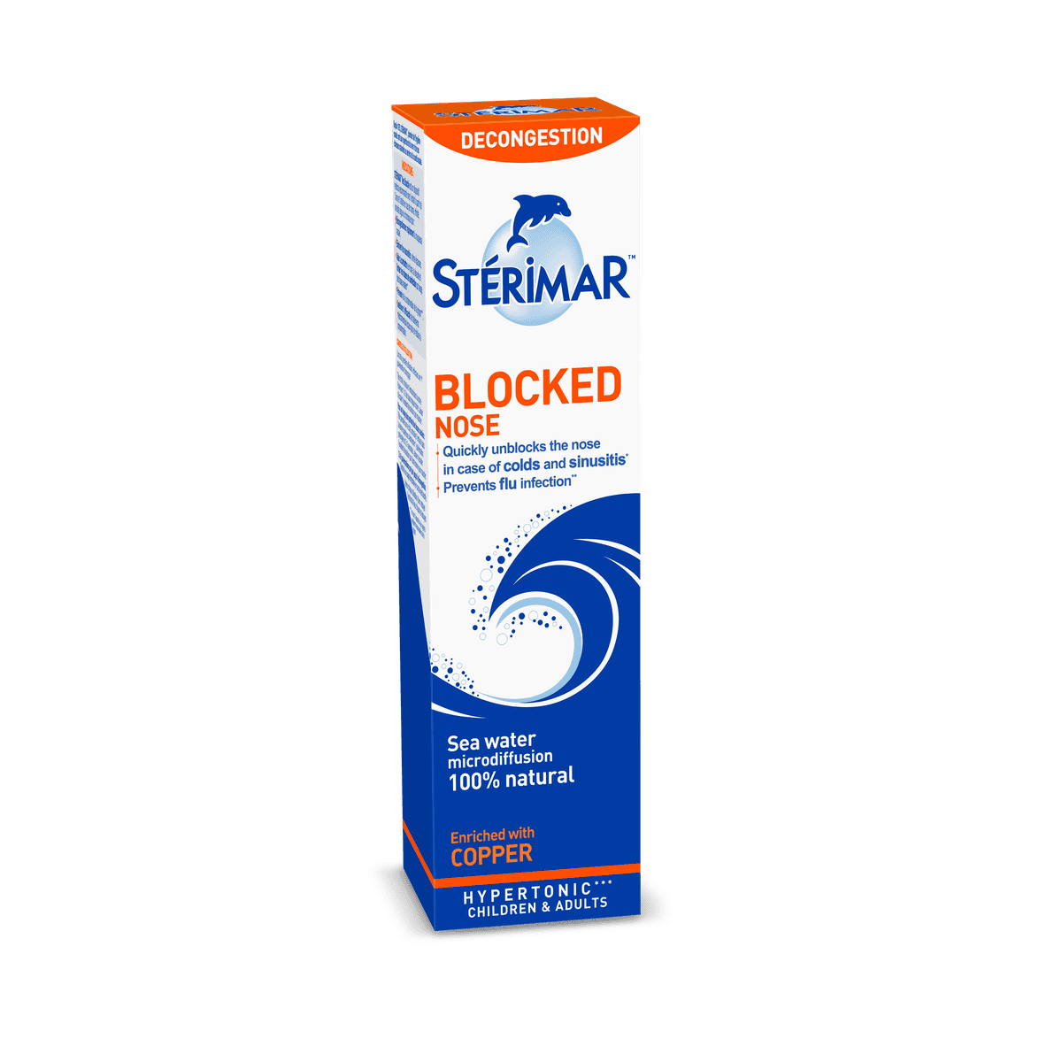 Sterimar Blocked Nose 100ml is a hypertonic sea water solution designed to relieve nasal congestion and prevent flu infections. Enriched with copper, it helps cleanse nasal passages and improve breathing. Suitable for children from 3 years and adults, it is gentle, steroid-free, and preservative-free. Ideal for those who cannot use medication.
