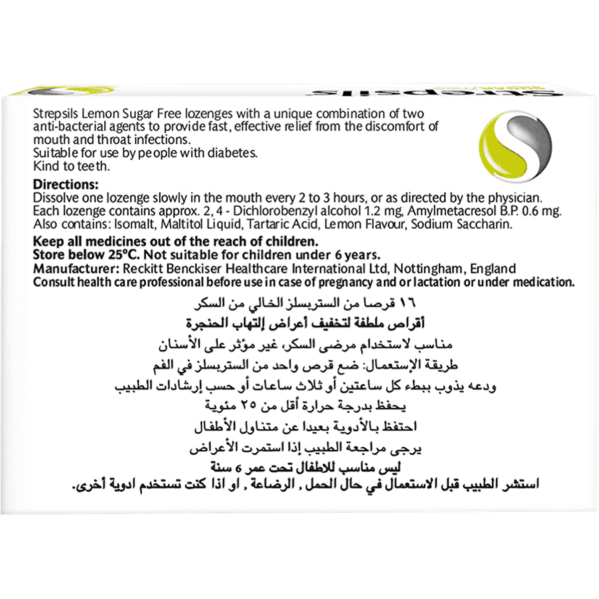 - Strepsils Lozenges Sugar Free Lemon 16 Pack