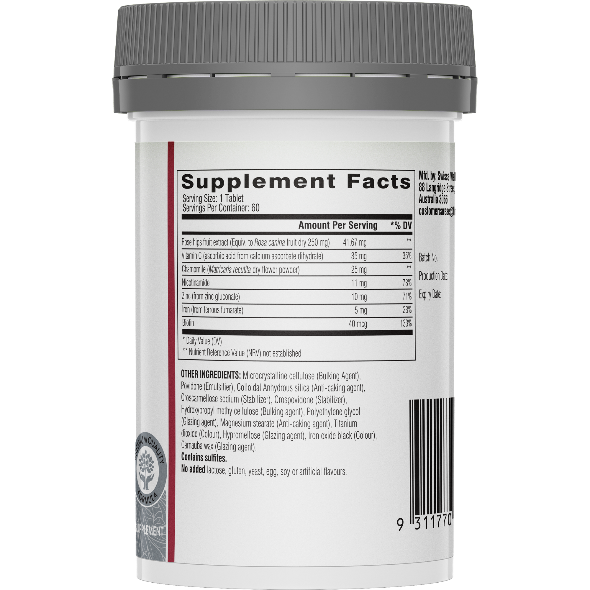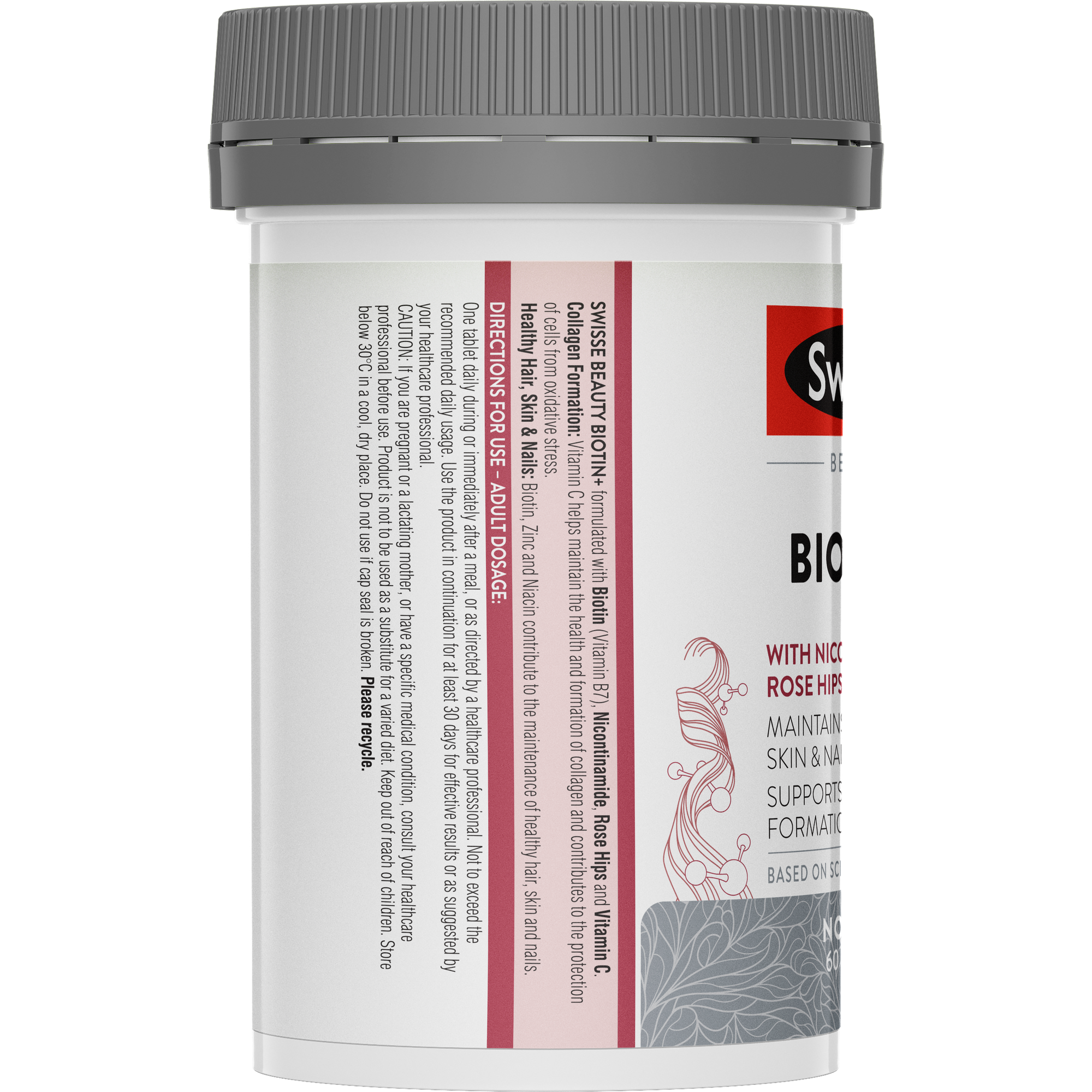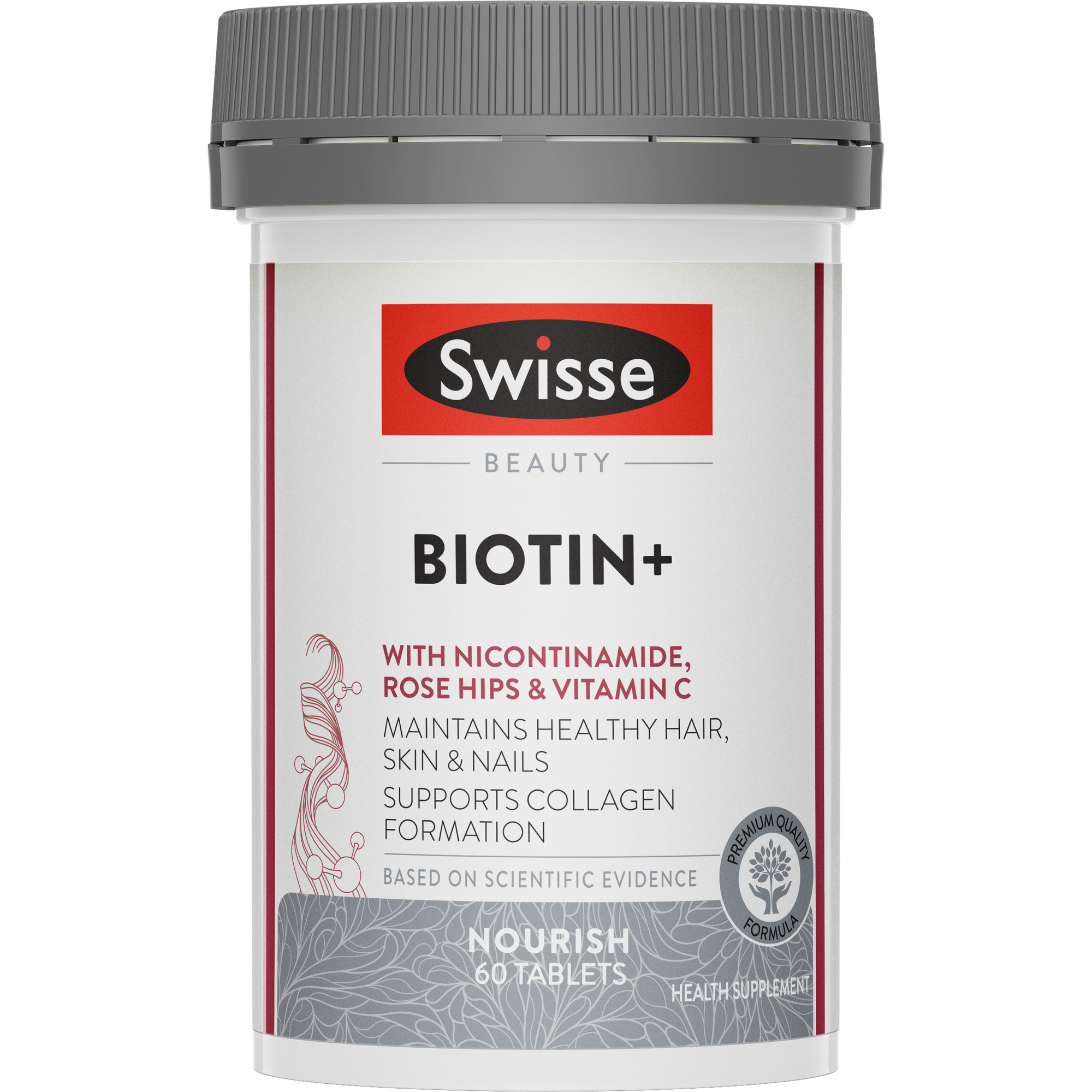 Meet the new addition to your beauty from within routine with Swisse Beauty Biotin+. This herb-free formula is designed to maintain healthy hair, skin, and nails. Featuring a higher dose compared to typical biotin supplements, this premium quality formula also supports collagen formation. Incorporate one tablet into your daily regimen to nourish from within.
