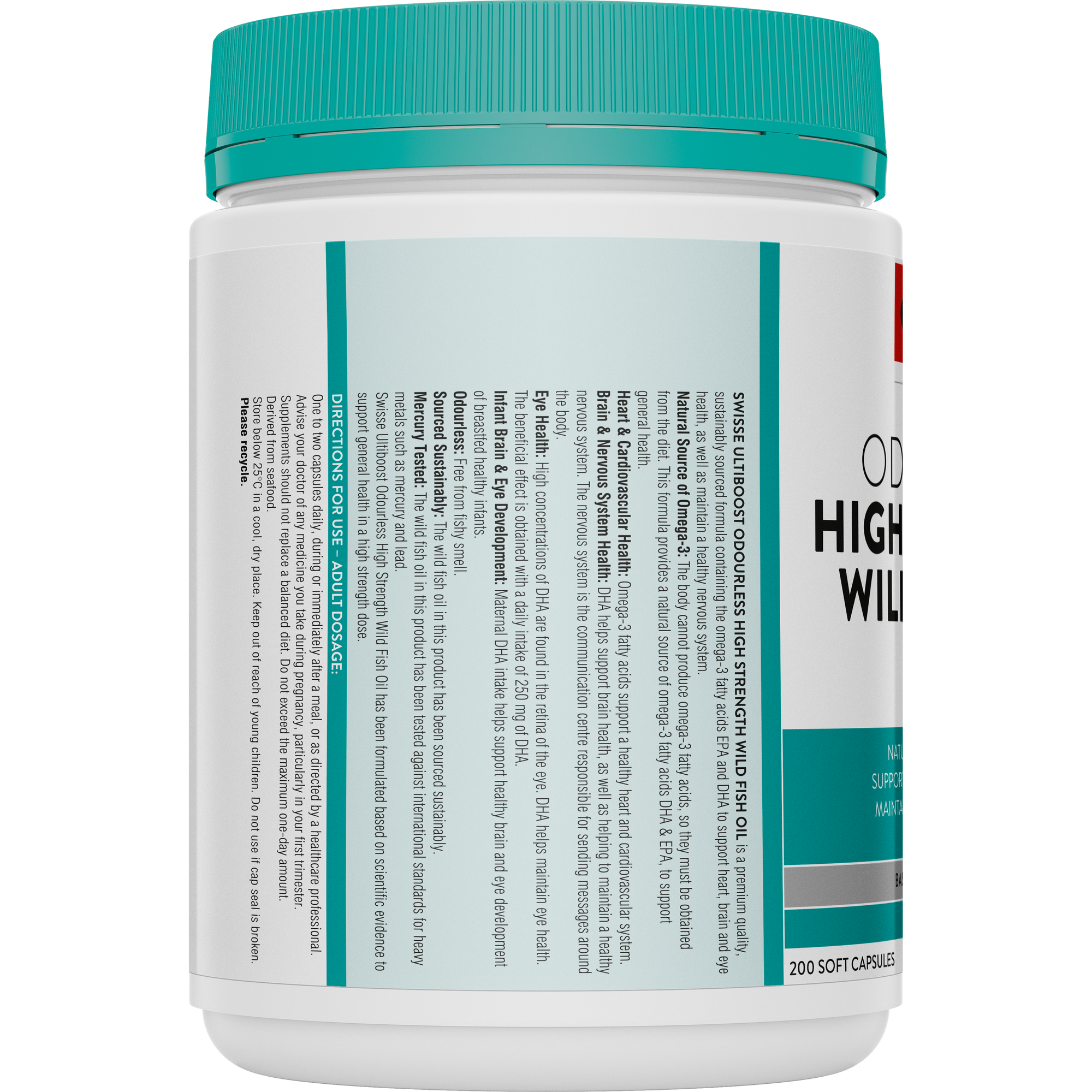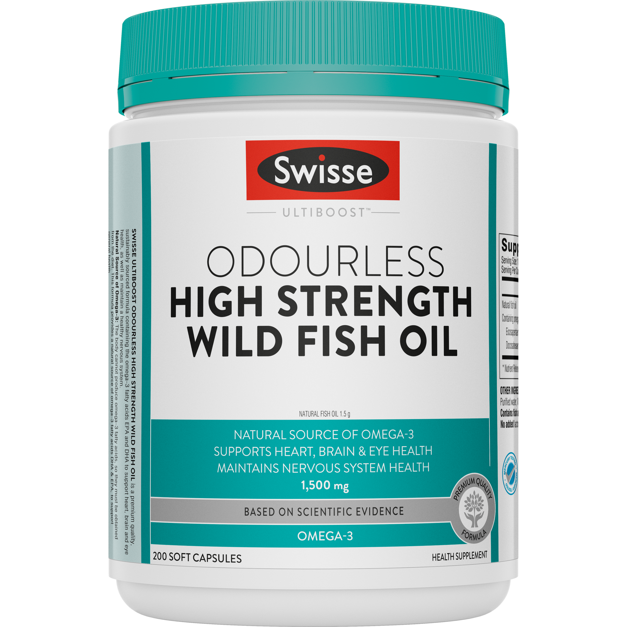 - Swisse Ultiboost Odourless High Strength Wild Fish Oil 1500mg 200 Capsules