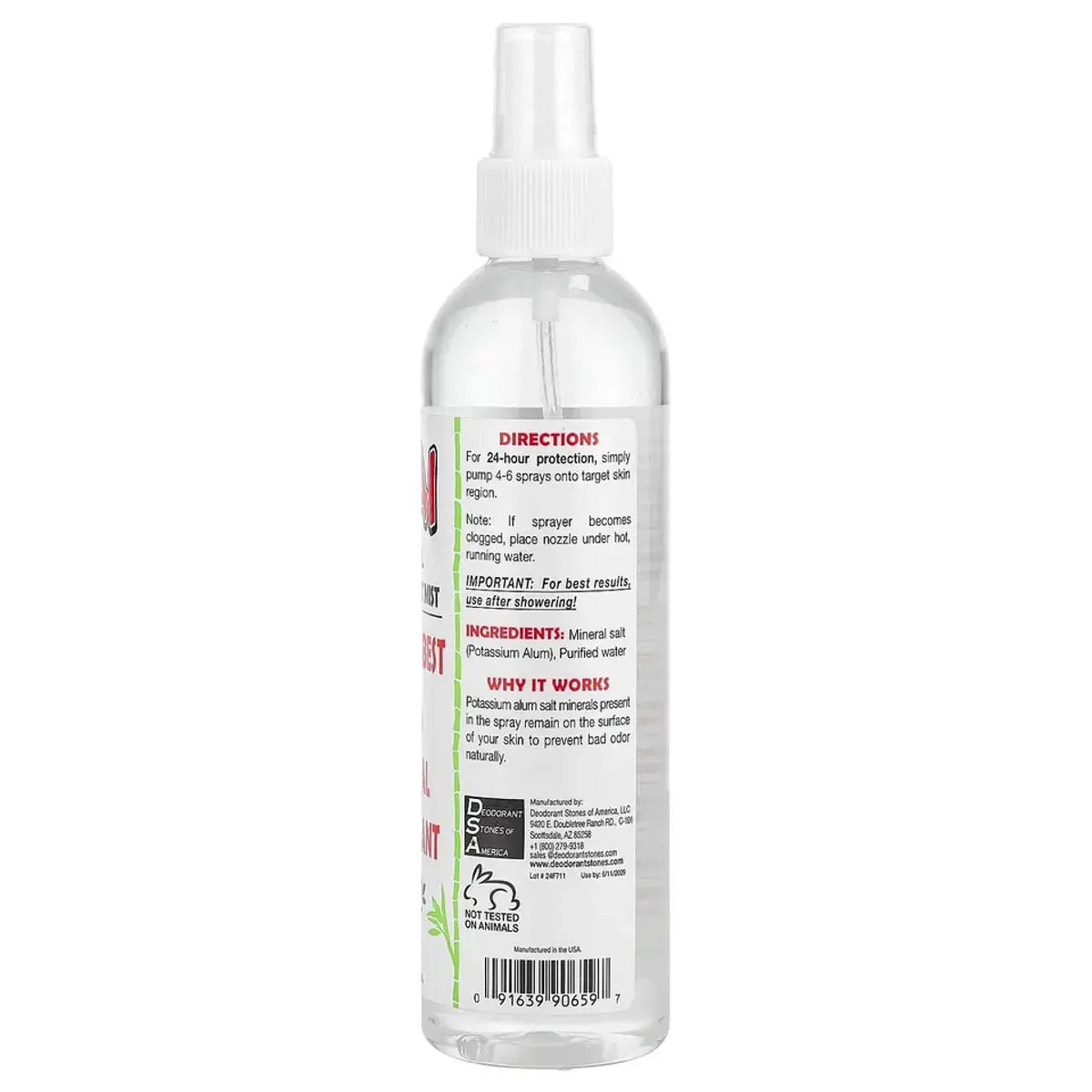 Thai Crystal Deodorant Spray offers 24-hour protection with natural mineral salts. It's eco-friendly, hypoallergenic, and suitable for sensitive skin. The aerosol-free formula prevents odor without staining clothes.