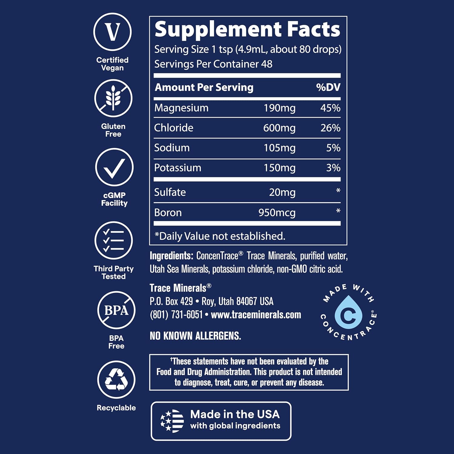 WARNING: This product contains highly concentrated minerals. If used undiluted, it may cause stomach upset. Do not exceed recommended serving.
