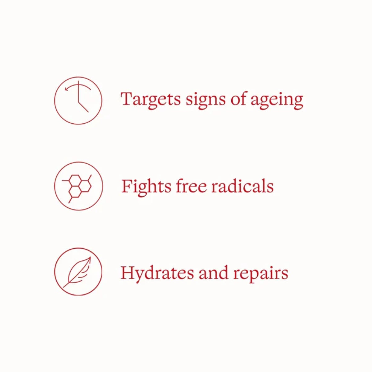 Gently massage 2-3 drops into the skin on your face, neck, and body, both morning and night. Use alone, or follow with your favourite moisturiser.