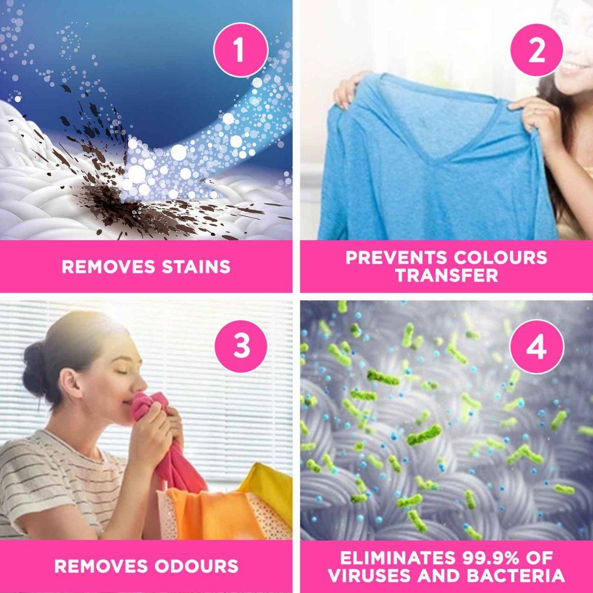 Soak: Dissolve the recommended dosage in 4L of warm water (40?C). Soak colored items for up to 1 hour. Wash: Add the recommended dosage to your detergent dispenser.