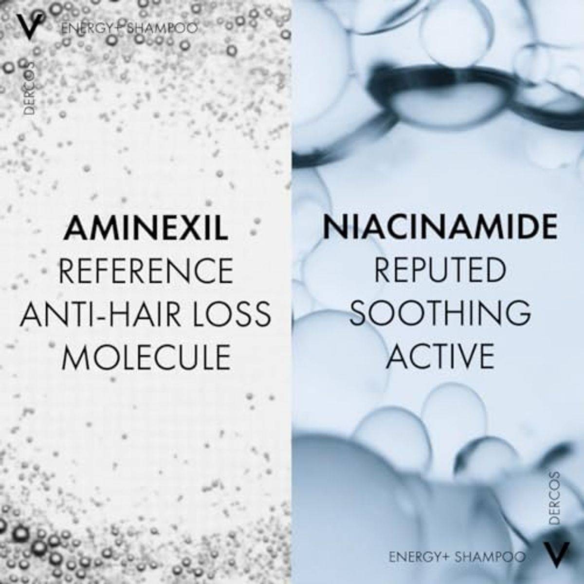 Vichy Dercos Energizing Stimulating Shampoo is designed to combat hair loss and strengthen hair. Enriched with Aminexil and Niacinamide, it revitalizes hair and boosts volume.