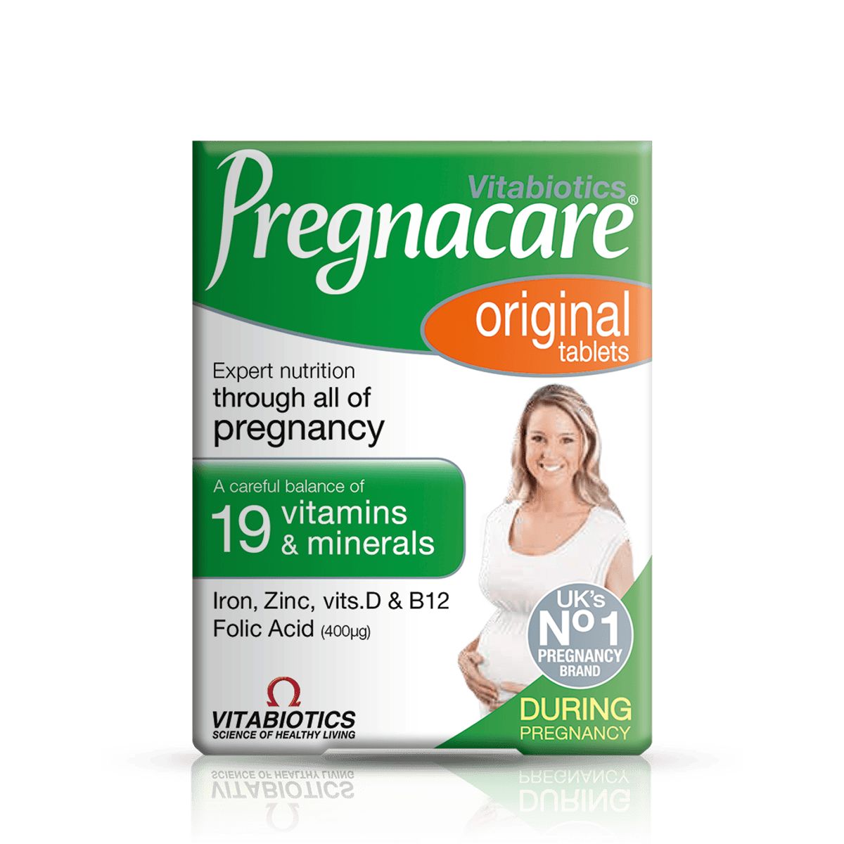 Vitabiotics Pregnacare Original provides expert nutrition for mother and baby, contributing to maternal tissue growth during pregnancy. Contains 400µg folic acid and 10µg vitamin D, as advised by the UK Department of Health. Includes 19 important nutrients for overall support, such as zinc for normal reproductive health.