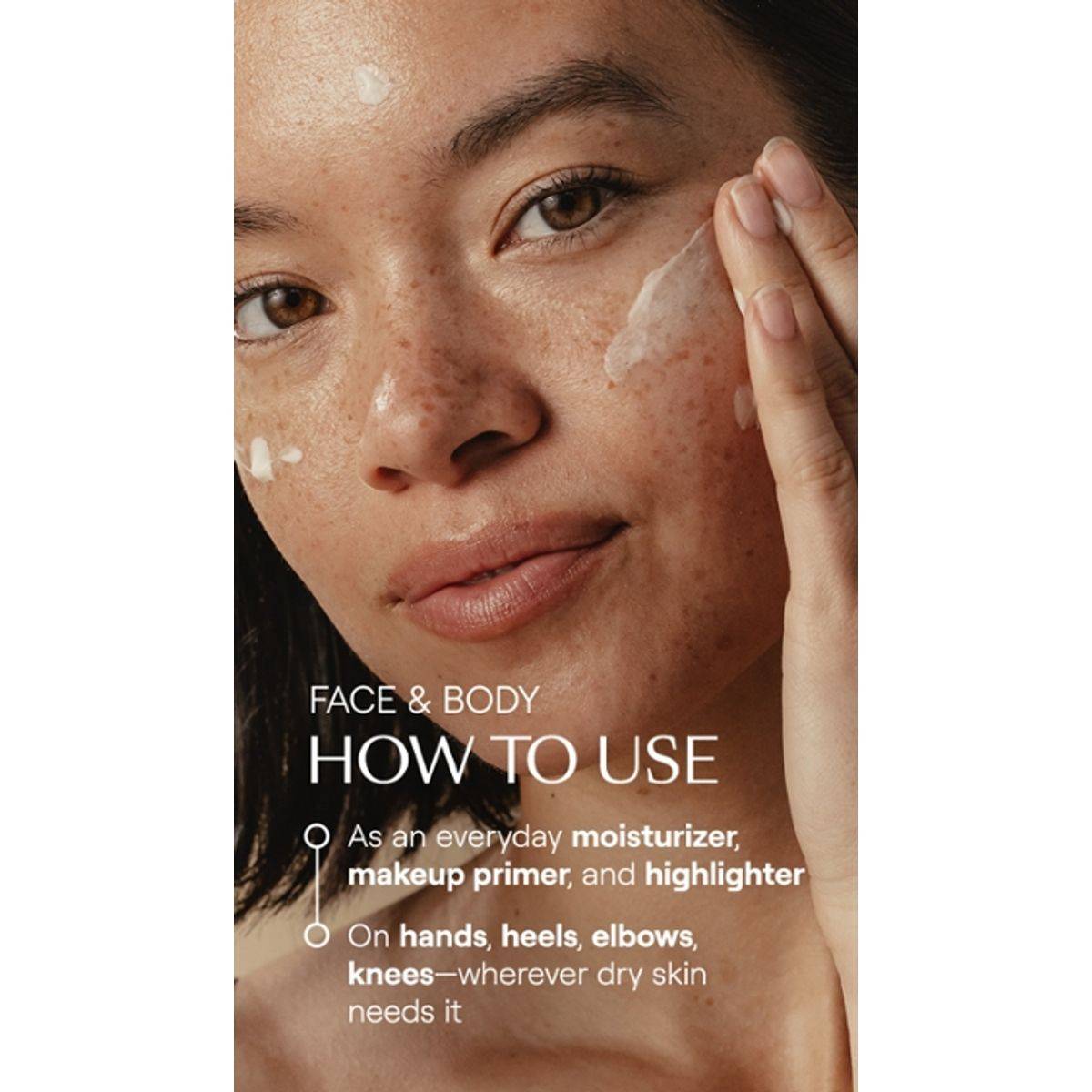 Apply as needed on hands, face, or body for immediate moisture.