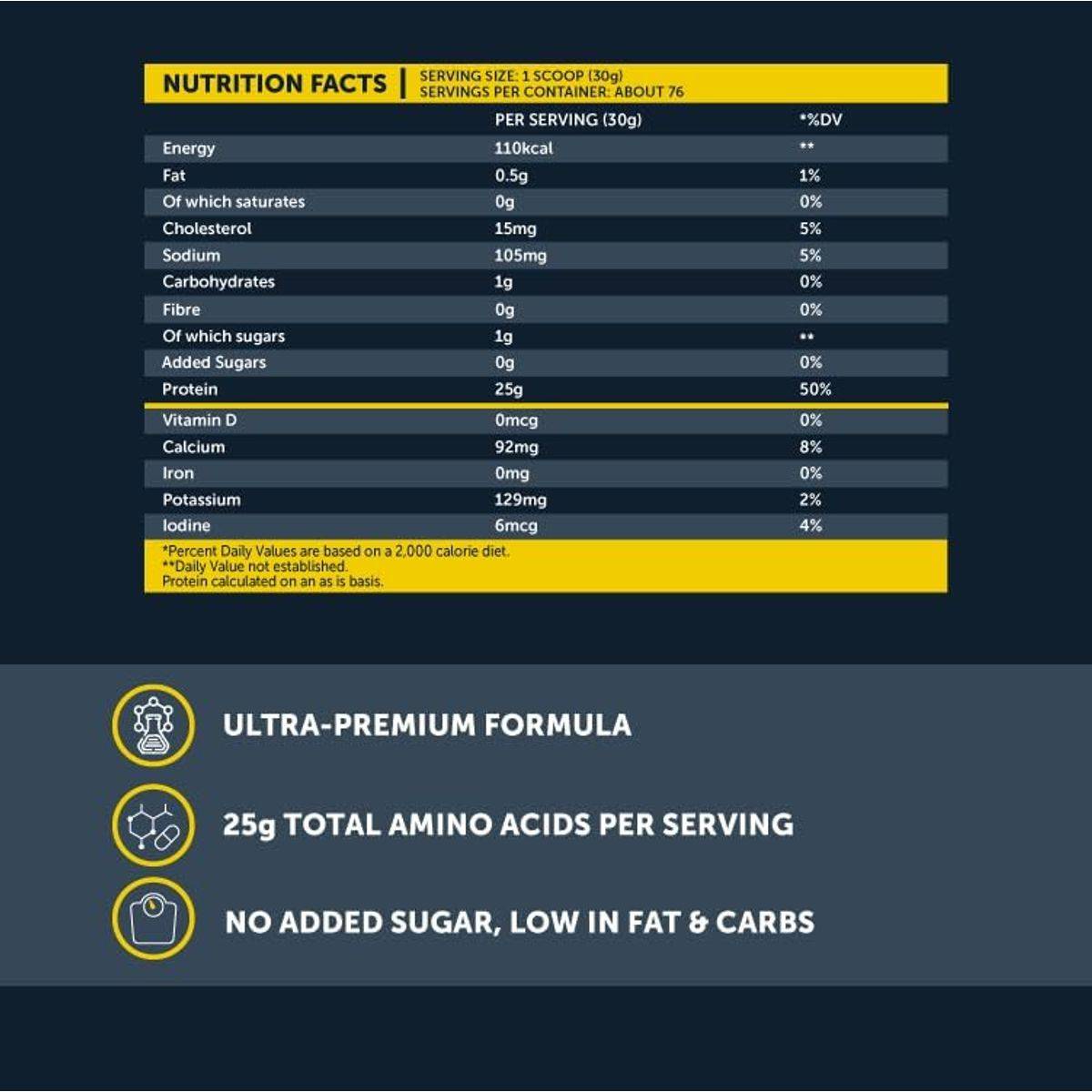 Basix Whey Protein Isolate XPRO Vanilla is an ultra-premium protein supplement designed to enhance muscle growth and recovery. Each serving provides 25g of high-quality protein with only 110 Kcal, 0.5g fat, and 1g sugar. Ideal for those watching their diet, it contains 5.5g of BCAAs essential for muscle repair.