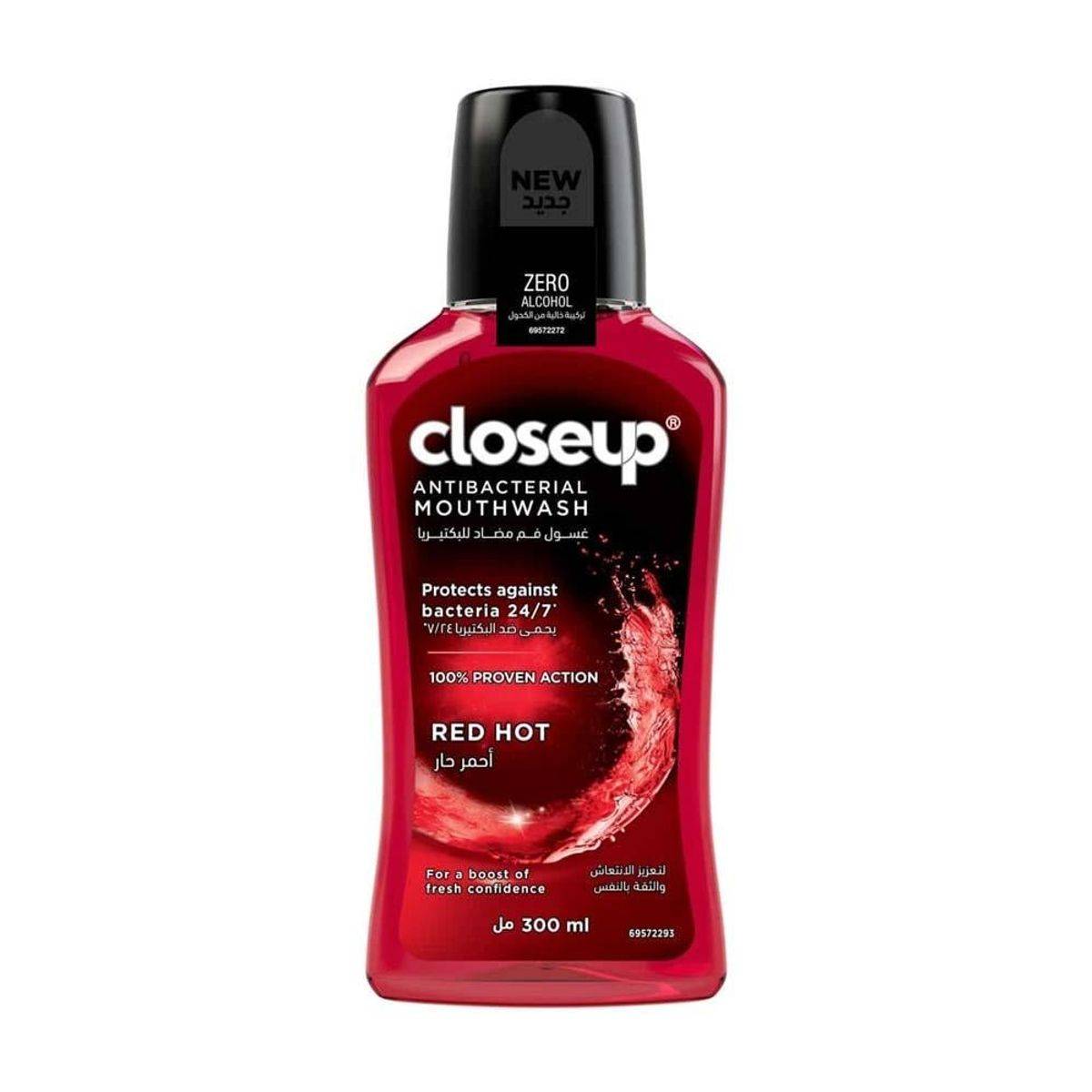 Close Up Mouthwash Red Hot is an antibacterial mouthwash designed for long-lasting freshness and germ protection. It uses natural clove oil and an anti-germ formula to fight bad breath. The alcohol-free formulation ensures no burning sensation or dryness, while deeply cleaning the mouth and being gentle on teeth and gums.