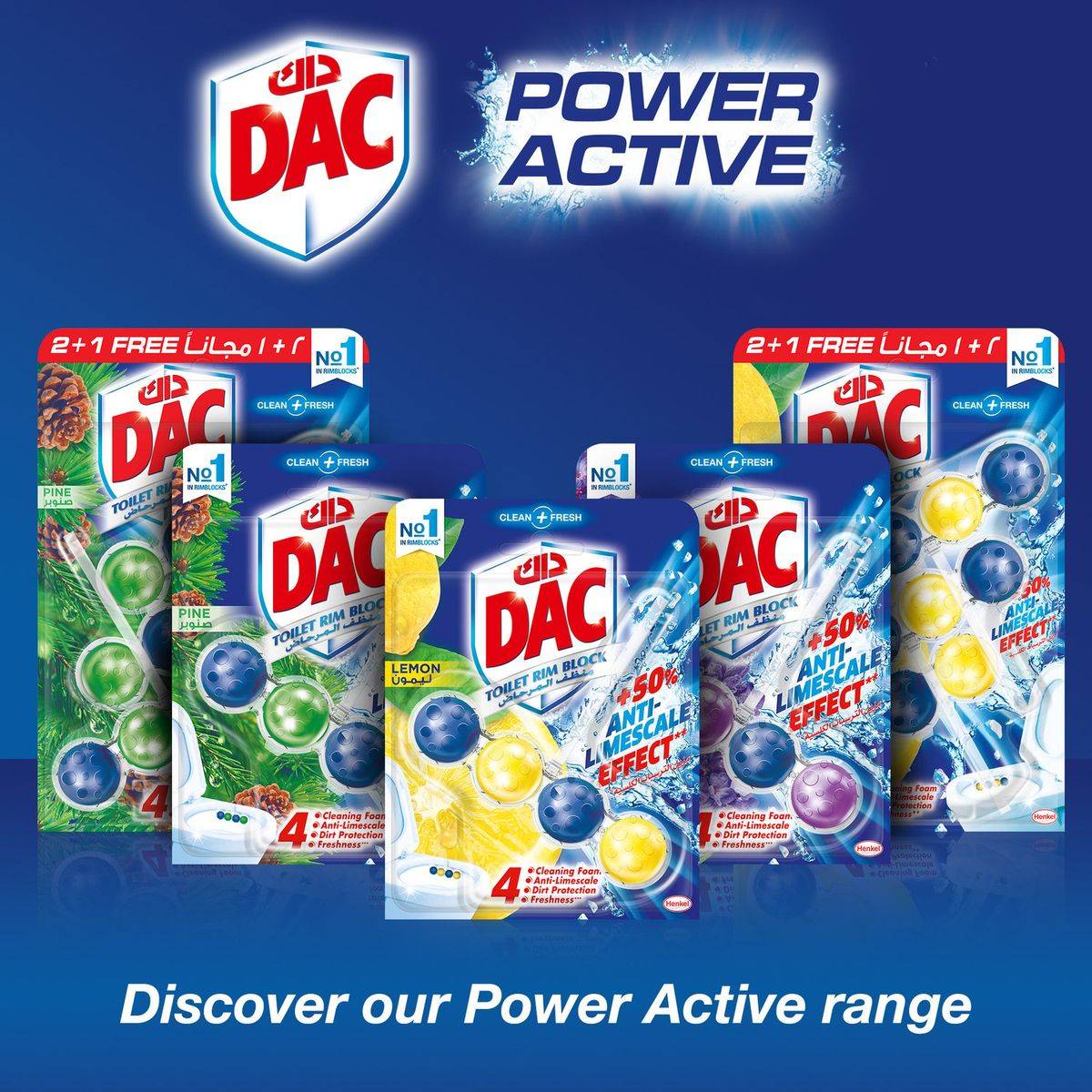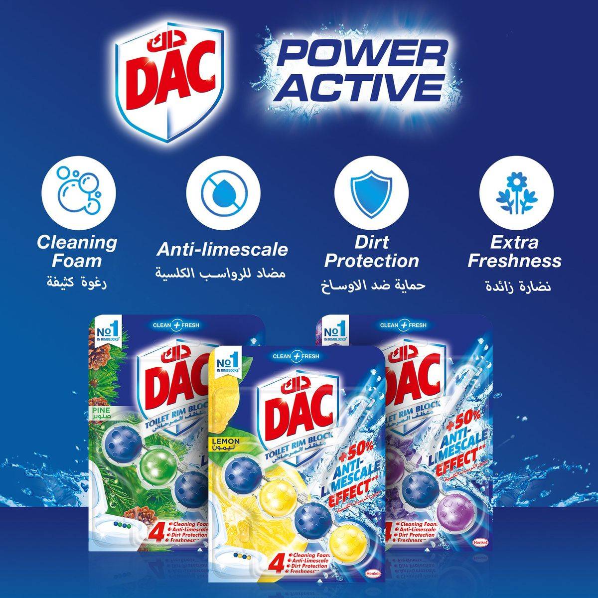 DAC Toilet Rim Block Pine 50g is designed to keep your toilet clean and fresh from the first to the last flush. With a 4-function formula, it offers cleaning foam, anti-limescale, dirt protection, and extra freshness. The air freshener technology ensures a long-lasting fresh scent in your bathroom. Its discrete design fits perfectly under every toilet rim, making it easy and convenient to use.