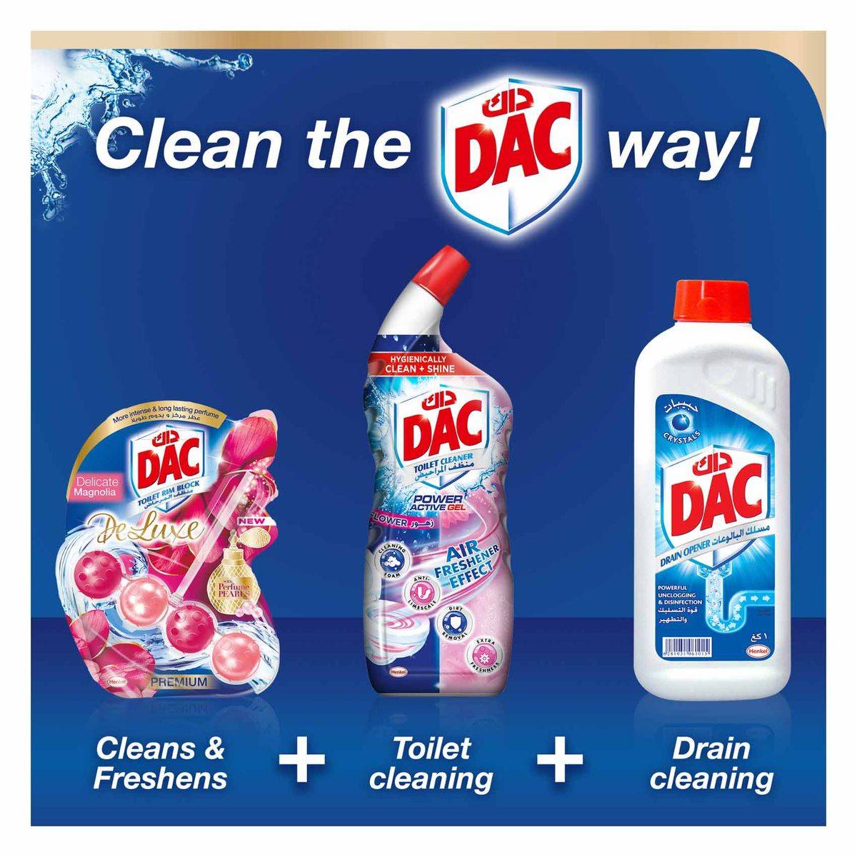 Dac Toilet Cleaner Floral 750ml offers a powerful cleaning solution with a floral scent. Its self-active formula ensures cleanliness and freshness without the need for scrubbing or bleach. Ideal for maintaining a hygienically clean and shiny toilet.