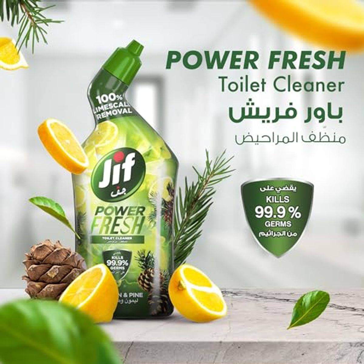 Jif Toilet Cleaner Lime Power 750ml is designed for powerful cleaning, effectively removing 100% of limescale and tough stains. Infused with a refreshing lemon and pine scent, it kills 99.9% of germs, ensuring a sparkling clean and germ-free toilet. Ideal for busy households, it provides 100% bowl coverage for a shiny finish.